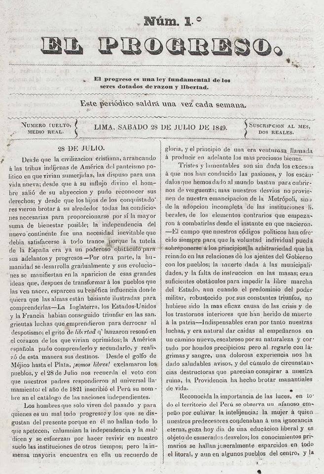 Periódico semanal publicado en Lima entre el 28 de julio de 1849 y el 15 de marzo de 1851 (87 números), más un suelto del 4 de abril de 1851 a modo de «último número». Su lema fue «El progreso es una ley fundamental de los seres dotados de razón y libertad». Sirvió como órgano del Club Progresista, el primer ensayo de partido político organizado en el Perú, el cual participó en las elecciones presidenciales de 1850 apoyando a la candidatura civil de Domingo Elías. Además de José Sevilla y Pedro Gálvez Egúsquiza, secretarios del Club, subscriben algunas colaboraciones en el semanario Francisco de Paula Gonzáles Vigil, José Casimiro Ulloa y Manuel Nicolás Corpancho. Fue impreso en las imprentas de El Comercio (por J. M. Monterola) y la de El Correo (por Juan Sánchez Selva).