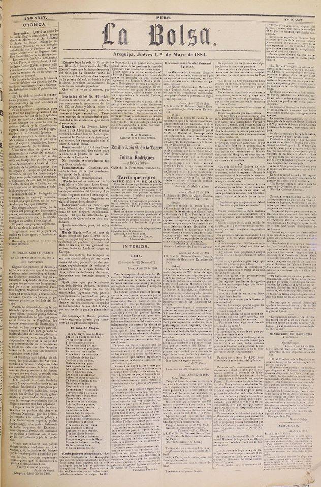 La Bolsa fue una de las publicaciones de larga data más importantes de la región arequipeña. Sus ediciones contienen información comercial, económica, empresarial y de la vida cotidiana arequipeña de la segunda mitad del siglo XIX e inicios del XX. Fue fundada en 1860 por Francisco Ibáñez, hijo de Jacinto Ibáñez, quien junto a J.M. Corbancho implantó la primera imprenta en Arequipa. Fue sucedido por su hermano Valentín Ibáñez Delgado. Algunos de los colaboradores históricos de La Bolsa fueron Toribio Pacheco, Armando de La Fuente, Jorge Polar, Francisco García Calderón, Manuel A. Mansilla. José Ciriaco Hurtado, Mariano A. Cateriano, Juan Cualberto Valdivia, entre otros. Fue publicado hasta 1915.