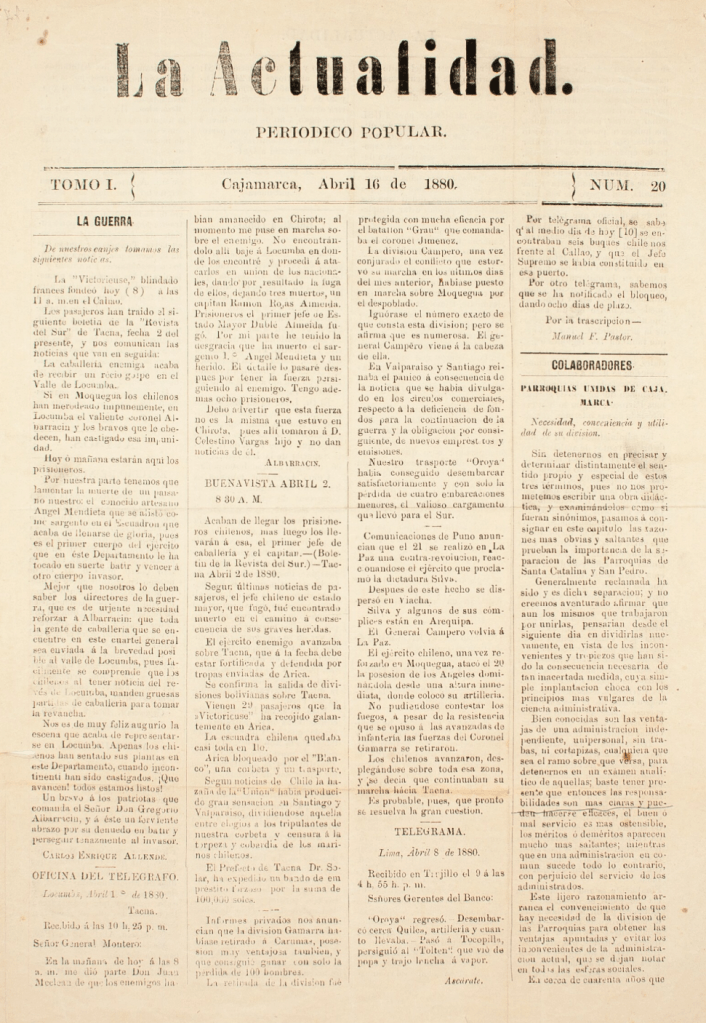 “Periódico popular” cajamarquino redactado por Simeón Saráchaga, con la colaboración de Juan Clemente Verjel, José Tadeo Pita, José Manuel Saldaña y Manuel F. Pastor. Apareció entre el 27 de noviembre de 1879 y mediados de 1880, años de desarrollo de la Guerra del Pacífico. En sus páginas se insertaron algunas notas sobre los acontecimientos bélicos, así como breves artículos en donde, de forma mesurada, criticaba las pretensiones de Chile con respecto a los territorios peruanos.