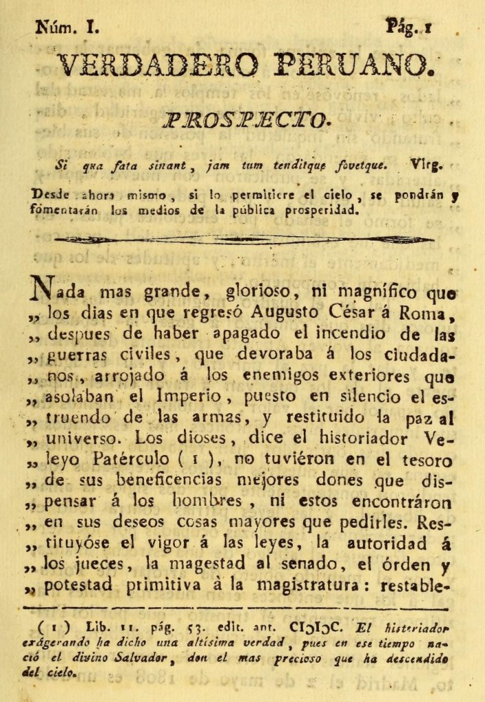 Semanario publicado en Lima bajo los auspicios del virrey José Fernando de Abascal. Su nombre implica una justificación de la censura impuesto a otros periódicos coetáneos debido a las avanzadas tendencias que sostuvieron a la sombra de la libertad de imprenta impulsada por las Cortes de Cádiz (El Peruano, El Satélite del Peruano, El Peruano Liberal). Según su prospecto y favoreciendo a la campaña del virrey, se proponía dar a conocer cuanto pudiera interesar y servir a la ilustración del Perú, haciéndolo con decencia y verdad. Su director fue el presbítero Tomás Flores, en colaboración con José Pezet, imprimiéndose en los talleres regentados de Bernandino Ruiz, entre setiembre de 1812 y agosto de 1813 (Tomo I: 28 nros; Tomo II: 17 nros.).