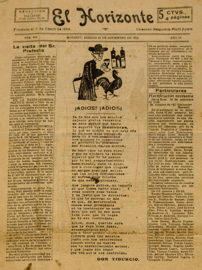 Semanario editado en Monsefú, fundado el 1 de enero 1928 y publicado al menos hasta 1967. Tuvo como director a Benjamín Pisfil Ayala. Los ejemplares digitalizados en la British Library contienen abundante información sobre la celebración del Señor Cautivo de Monsefú de 1933 y las protestas populares contra el párroco responsable de las limosnas Arístides Pitao, acusado de malversación de fondos. Podemos encontrar también poemas de “Don Tiburcio”, además de crónicas y noticias de interés para el departamento de Lambayeque.
