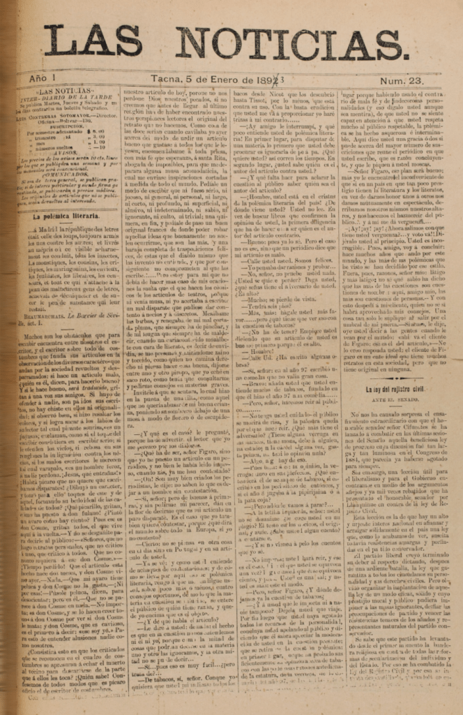 Publicación vespertina interdiaria aparecida en la cautiva Tacna entre noviembre de 1892 y 1893. Fue editada en la Tipografía y Litografía de R. R. Teixeira. Insertaba principalmente noticias de diversos diarios de Chile, telegramas y correspondencias de interés para la administración chilena en Tacna.