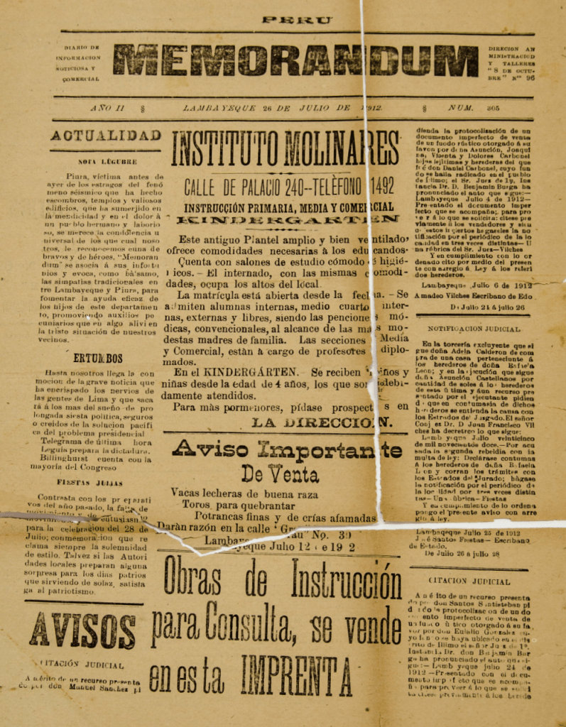 “Diario de información noticiosa y comercial” publicado en Lambayeque entre 1911 y al menos 1912, editado en la Imprenta La Reforma. Desde febrero de 1912 tuvo como administrador a Elías Doig. Sus páginas insertaron anuncios judiciales, documentación oficial de interés para el departamento, avisos comerciales y de instituciones educativas, entre otros.