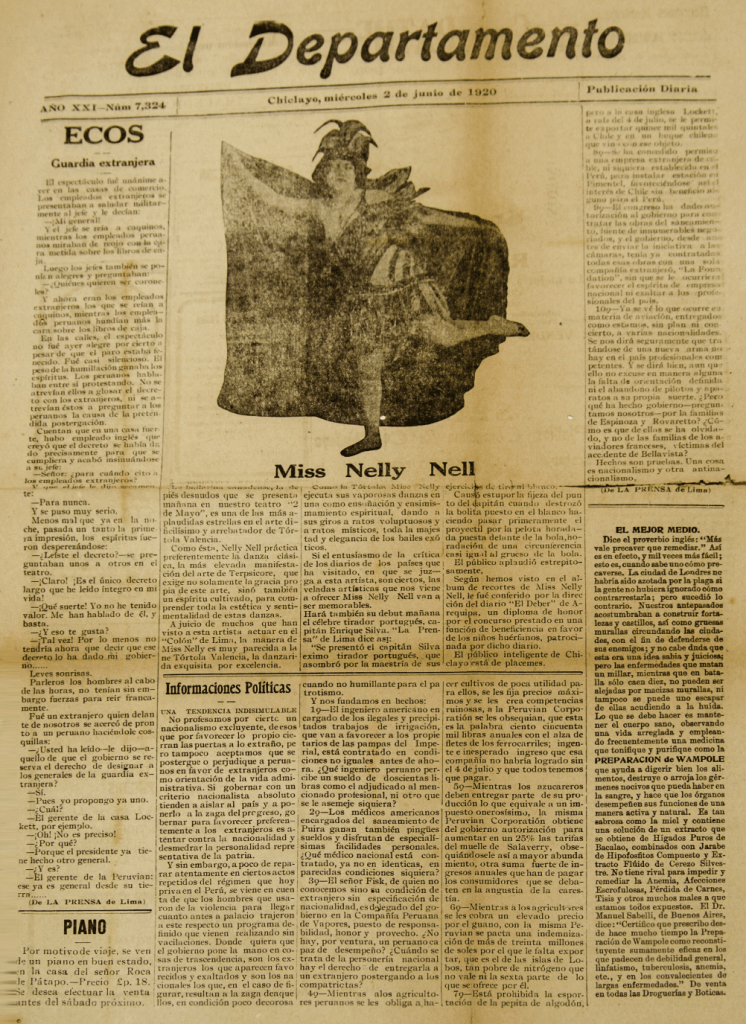 Periódico independiente chiclayano aparecido entre 1899 y al menos 1920, administrado por José Soto y López. Para 1903, además, aparecía Pedro José Soto como editor y regente. Fue sucesor de La Provincia (Chiclayo, 1892-[1895]). Fue impreso en los talleres de la Imprenta de El Departamento, situado en la Plaza de Armas de Chiclayo, “en el antiguo Almacén Portal de Dall´Orso y Descalzi” (Año V, nro. 719, 16 de noviembre de 1903, p. 1). Sus páginas se dedicaron a la defensa y desarrollo del comercio, agricultura e industrias del departamento de Lambayeque, teniendo como lema “Libertad, Instrucción y Honradez”. Según Zevallos (1947), vino a ser “el primer diario departamental” de Lambayeque (p. 16).