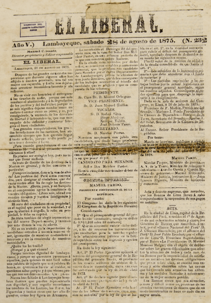 Semanario político lambayecano aparecido entre 1868 y al menos 1879. Tuvo como director, propietario y editor responsable a Manuel Crisanto. Fungió como órgano del Club del Pueblo, agrupación partidaria del presidente José Balta. Según revela Jorge Zevallos (1947, p. 42), su primer número fue emitido el jueves 21 de mayo de 1868, mientras que el último que llegó a conocer es el 325 del jueves 31 de julio 1879. Entre 1876 y 1878 sufrió una clausura obligada, por lo que el ejemplar digitalizado en la British Library (28 de agosto de 1875) pertenece a un año antes de su clausura y a la mitad del auge periodístico del semanario. Dicho ejemplar contiene casi en su totalidad información sobre la candidatura de Melchor Pastor como senador de Lambayeque, incluyendo correspondencias en donde narra su decisión política.