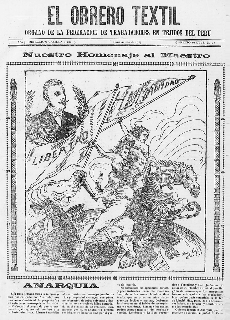 Órgano de la Federación de Trabajadores en Tejidos del Perú, publicado entre 1919 y 1925 bajo la dirección de Arturo Sabroso Montoya. Tuvo como principal preocupación estimular la institucionalización y el nivel organizativo del movimiento obrero en general y el de los gremios textiles en específico. Cabe mencionar que El Obrero Textil apareció en momentos que la clase trabajadora se encontraba un tanto desconcertada y confundida, tras las jornadas de enero y mayo de 1919, movimientos ambos que demostraron la insuficiencia de los planteamientos del anarcosindicalismo, por lo que desde sus primeros números apunta a fortalecer la organización proletaria (Sánchez, 1987, p. 57).