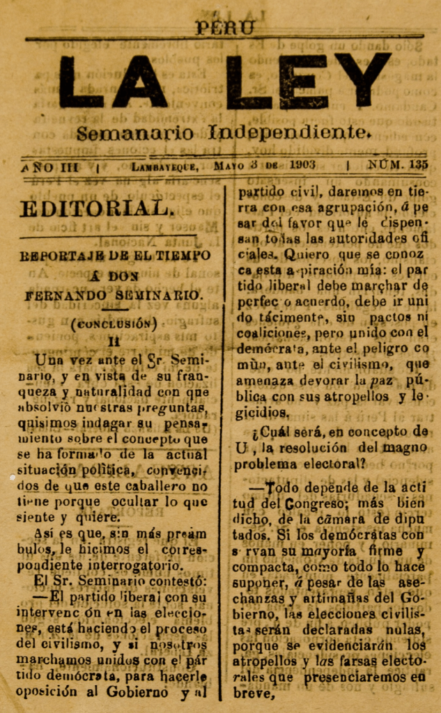 Periódico Independiente lambayecano, publicado entre 1900 y al menos 1904. Tuvo como administrador y regente a Felipe Caramutti, siendo su director y redactor Néstor G. Voyset. Zevallos encuentra su primer número el 6 de octubre de 1900. A partir de 1904 apareció bajo la mención de “Tercera Época”, de redacción anónima.