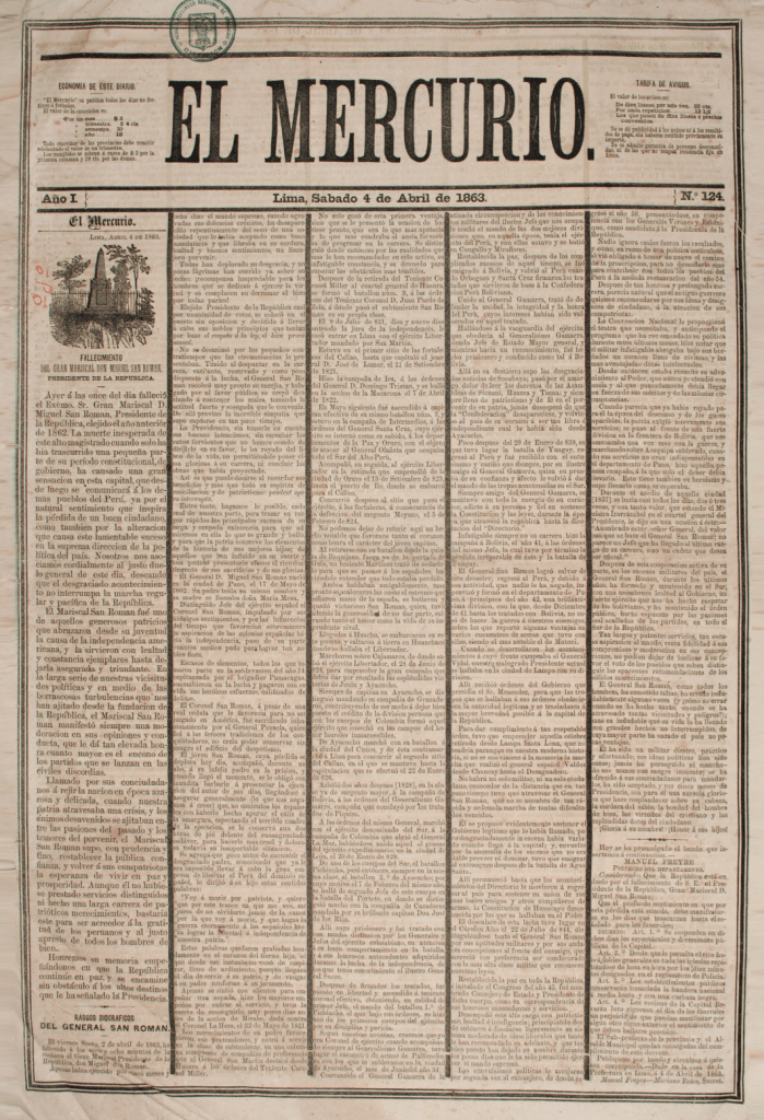 Arrambide, Víctor (2019). La imprenta de El Mercurio (1862-1865): una empresa editorial en Lima del siglo XIX. Revista del Archivo General de la Nación, 34(1), 9-30.