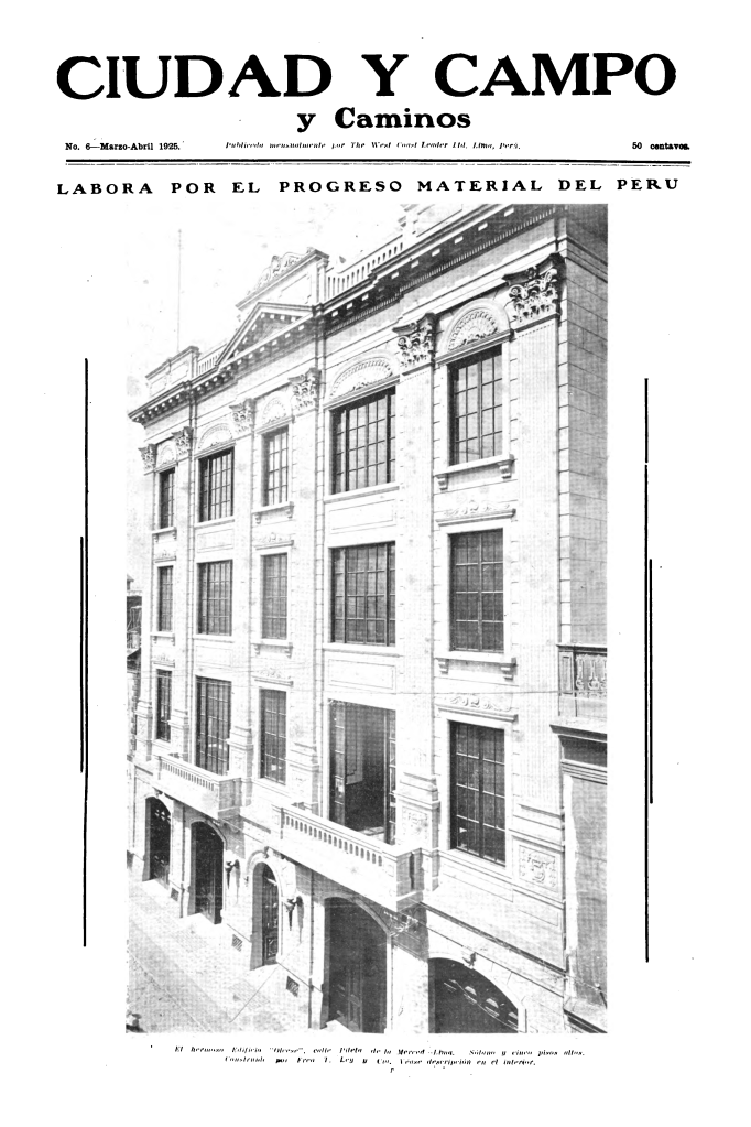 […] en presencia del asombroso desarrollo que entre nosotros han adquirido en éstos últimos tiempos las empresas de urbanización y de construcciones y el espíritu que se ha despertado por parte del público de adquirir su propio techo y convertirse en propietario […] ha determinado a los editores de “Ciudad y Campo” a satisfacer ésta necesidad, publicando ésta revista mensual, destinada a servir a los intereses, por una parte, de los que aspiran a ser propietarios, y por otra, de los dueños de terreno, arquitectos, contratistas, constructores y de los que comercian en materiales de construcción, instalaciones hidráulicas y de alumbrado y en la venta de inmobiliarios y todos los artículos que comprende la completa ornamentación de edificios públicas y residencias […]. Ciudad y Campo, Lima, Año I, nro. 1, jul. 1924, p. 2.