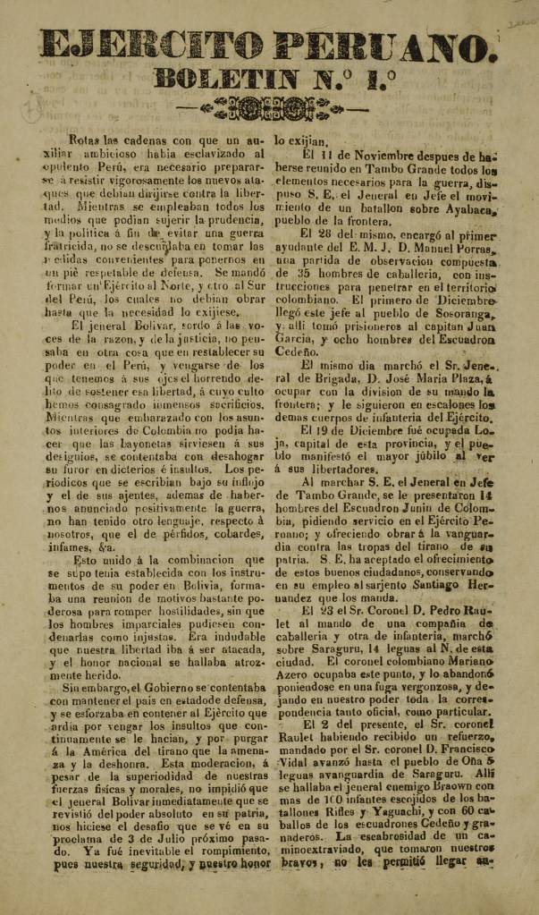 El seguimiento de los acontecimientos señalados en Ejército Peruano pueden ser continuados en El Despertador Republicano (Piura, 1829).