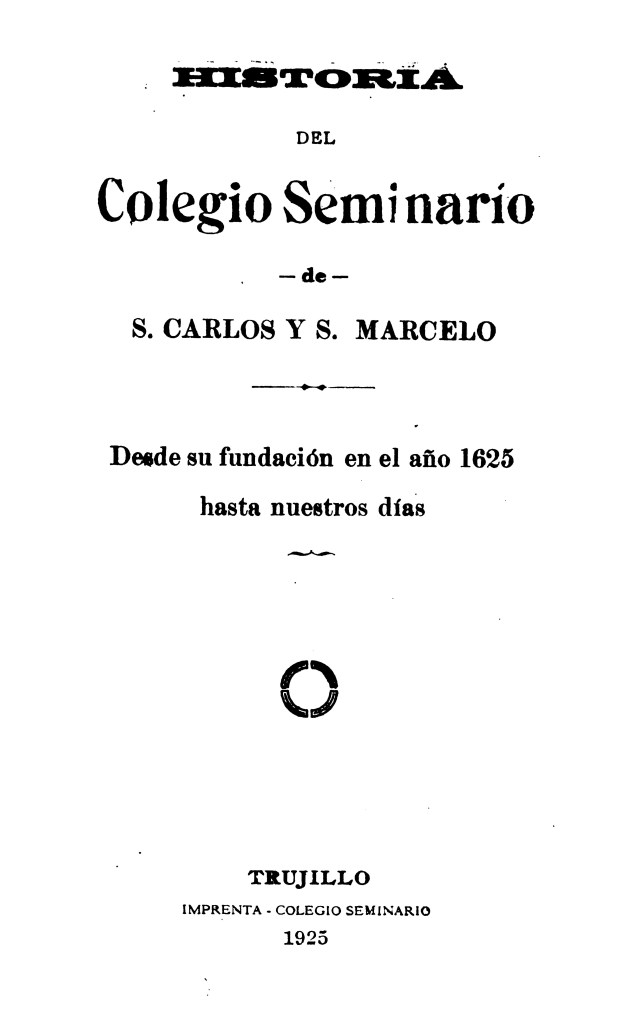 Oquillas, C. (1925). Historia del Colegio Seminario de S. Carlos y S. Marcelo: desde su fundación en el año 1625 hasta nuestros días. Trujillo: Imprenta Colegio Seminario.