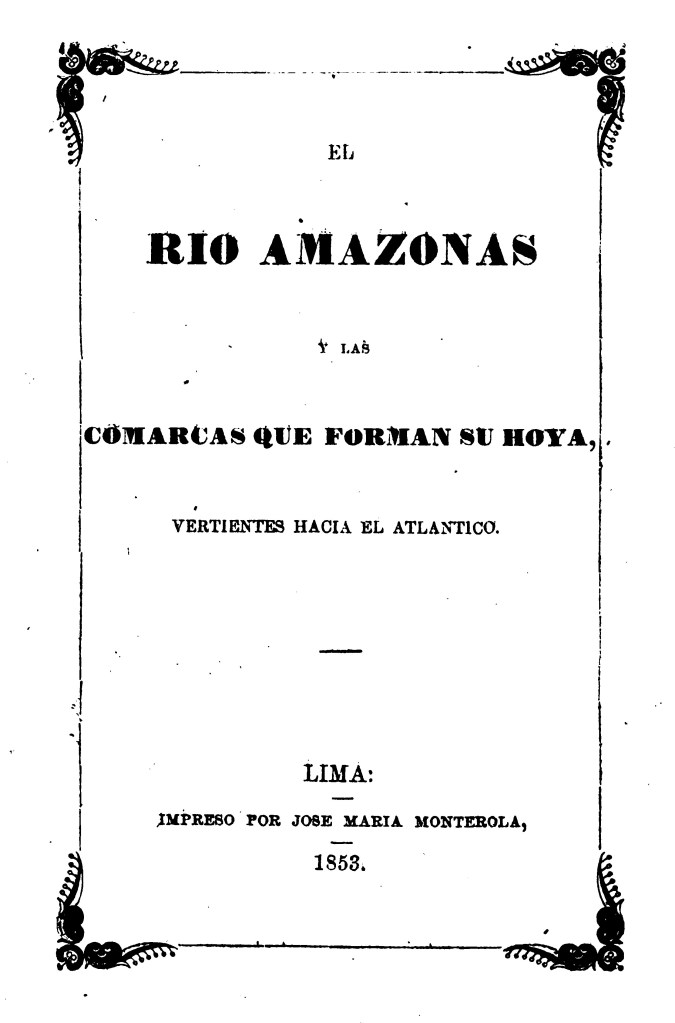 Esta fuente de 1853, impresa en Lima por José María Monterola, que se atribuye su autoría al marino inglés Matthew Fontaine, no presenta mención de autor, solo la firma “Manco Cápac” al final del texto. La versión en inglés, que tiene como título The Amazon, and the Atlantic Slopes of South America, se firmó con el nombre de “Inca”, por lo que es probable que el traductor haya realizado el cambio del sobrenombre. En el impreso peruano se puede encontrar un adjunto del Decreto de 1853, del presidente Rufino Echenique, sobre la navegación del Amazonas, diferente del impreso en Bolivia de 1854, que tiene un prólogo redactado por el traductor Rafael Bustillo. No podemos afirmar que este último haya sido también el traductor del impreso en Lima, pues desde la traducción del título y comparando los párrafos, se vislumbran diferencias.