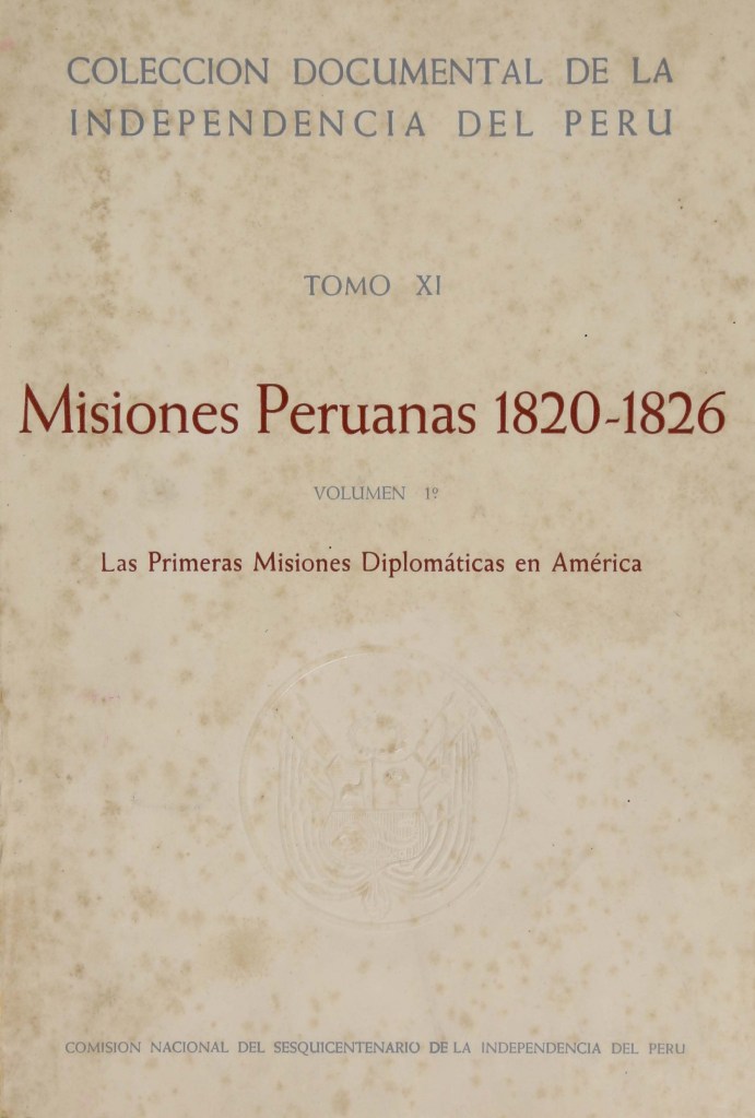 Comisión Nacional del Sesquicentenario de la Independencia del Perú (1972-1973, 1975). Colección Documental de la Independencia del Perú. Tomo XI: Misiones Peruanas, 1820-1826, 3 vols. Lima: Comisión Nacional del Sesquicentenario de la Independencia del Perú.