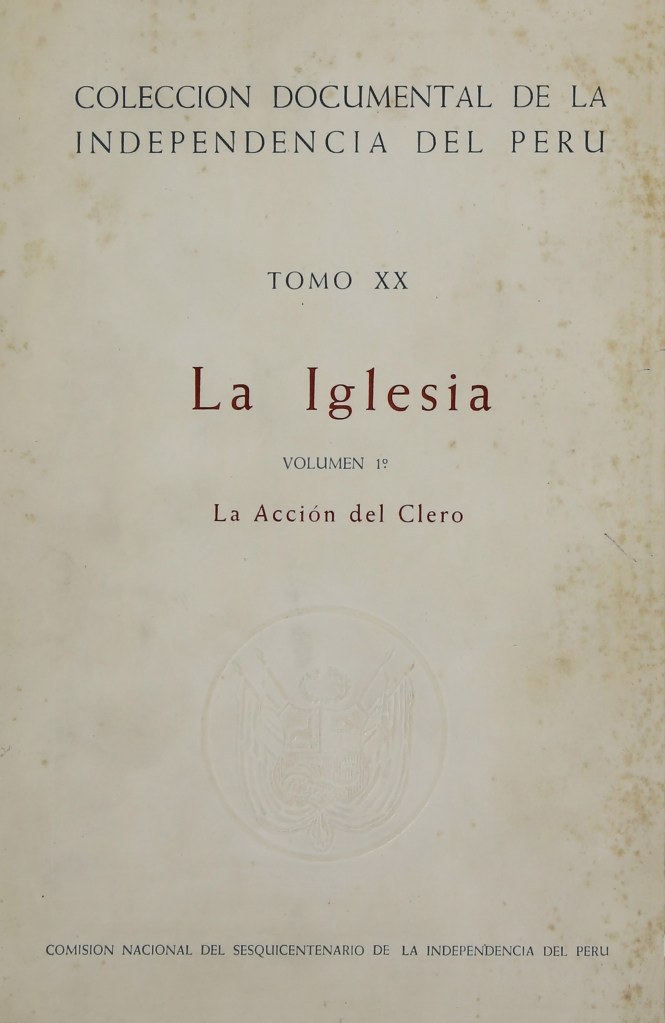 Comisión Nacional del Sesquicentenario de la Independencia del Perú (1971-1972). Colección Documental de la Independencia del Perú. Tomo XX: La Iglesia, 2 vols. Lima: Comisión Nacional del Sesquicentenario de la Independencia del Perú.