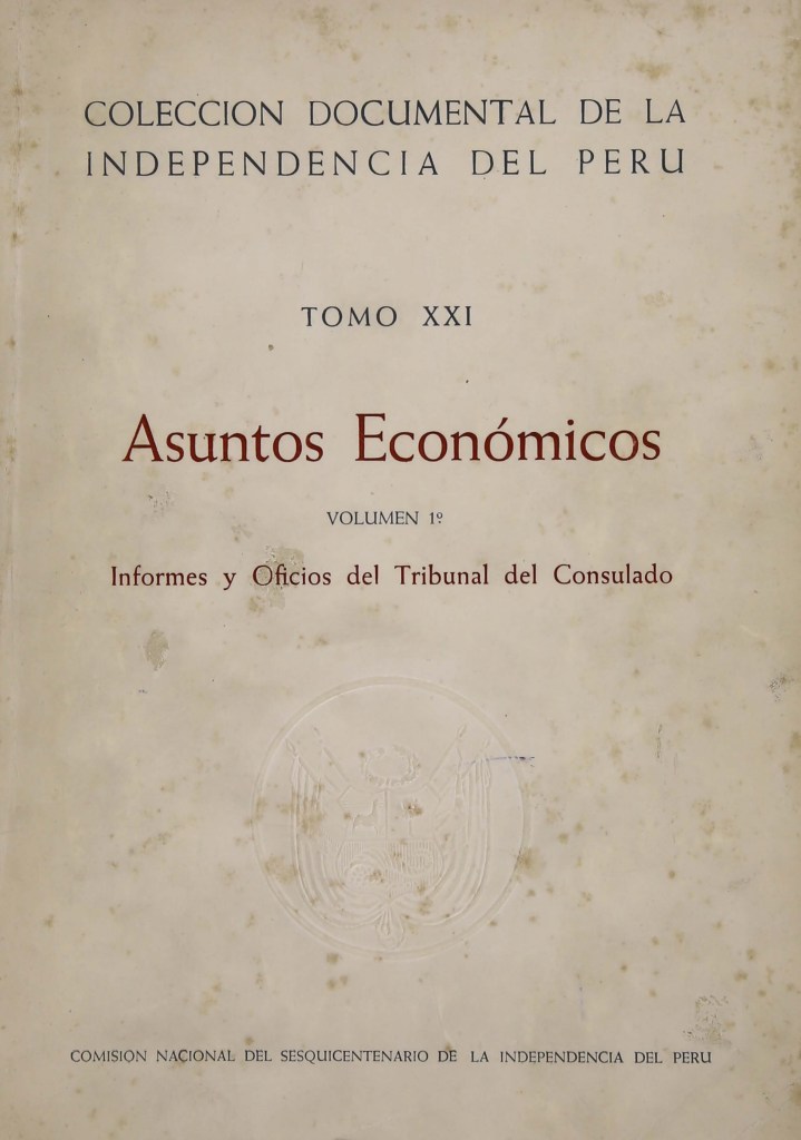 Comisión Nacional del Sesquicentenario de la Independencia del Perú (1971). Colección Documental de la Independencia del Perú. Tomo XXI: Asuntos Económicos, 1 vol. Lima: Comisión Nacional del Sesquicentenario de la Independencia del Perú.