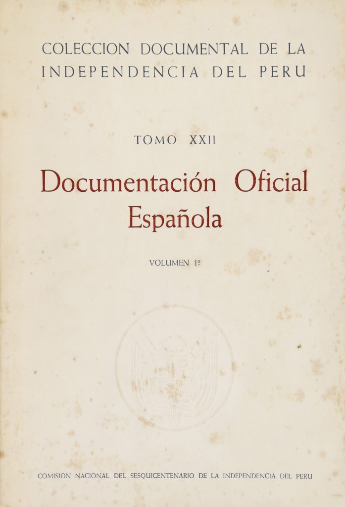 Comisión Nacional del Sesquicentenario de la Independencia del Perú (1972-1973). Colección Documental de la Independencia del Perú. Tomo XXII: Documentación Oficial Española, 3 vols. Lima: Comisión Nacional del Sesquicentenario de la Independencia del Perú.