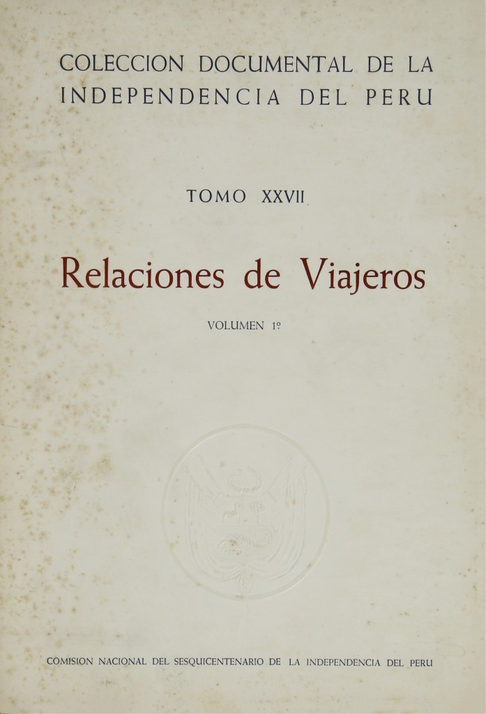Comisión Nacional del Sesquicentenario de la Independencia del Perú (1971, 1973). Colección Documental de la Independencia del Perú. Tomo XXVII: Relaciones de Viajeros, 4 vols. Lima: Comisión Nacional del Sesquicentenario de la Independencia del Perú.