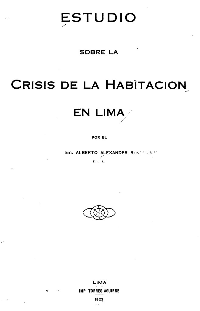 Alexander, Alberto (1922). Estudio sobre la crisis de la habitación en Lima. Lima: Imprenta Torres Aguirre.