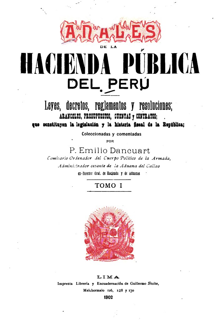 | Tomo I, 1901 (Acceso 2) | La hacienda del Perú en la época de la dominación española. Historia de la legislación fiscal del Perú de 1821 a 1826. Documentos de 1821 a 1825. |