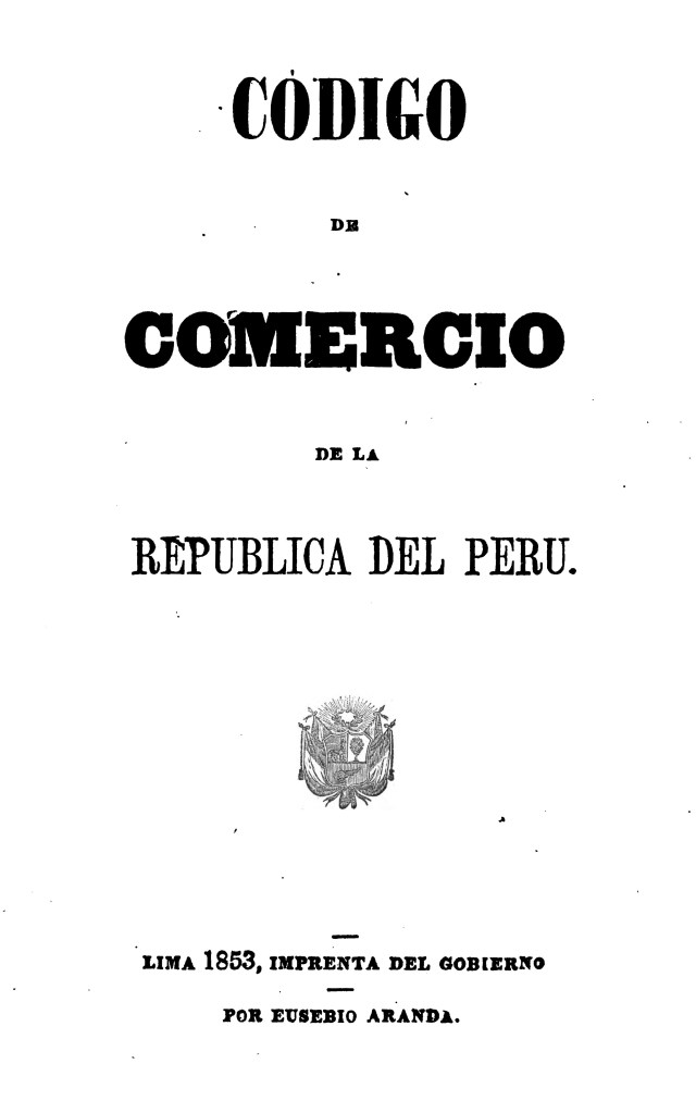- Echenique, José Rufino (1853). Código de Comercio de la República del Perú. Lima: Imprenta de<z<l Gobierno.