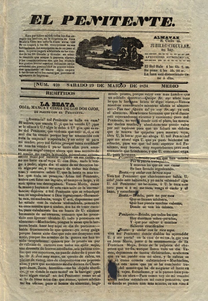 Diario limeño publicado entre el 1 de setiembre de 1832 y el 29 de noviembre de 1834, con un total de 600 números y ediciones extraordinarias. Fue impreso en los talleres de José María Concha. Tuvo como principales editores a Bernardo Sófia y José Félix Iguain. En palabras de Mariano Felipe Paz Soldán (1879), El Penitente: