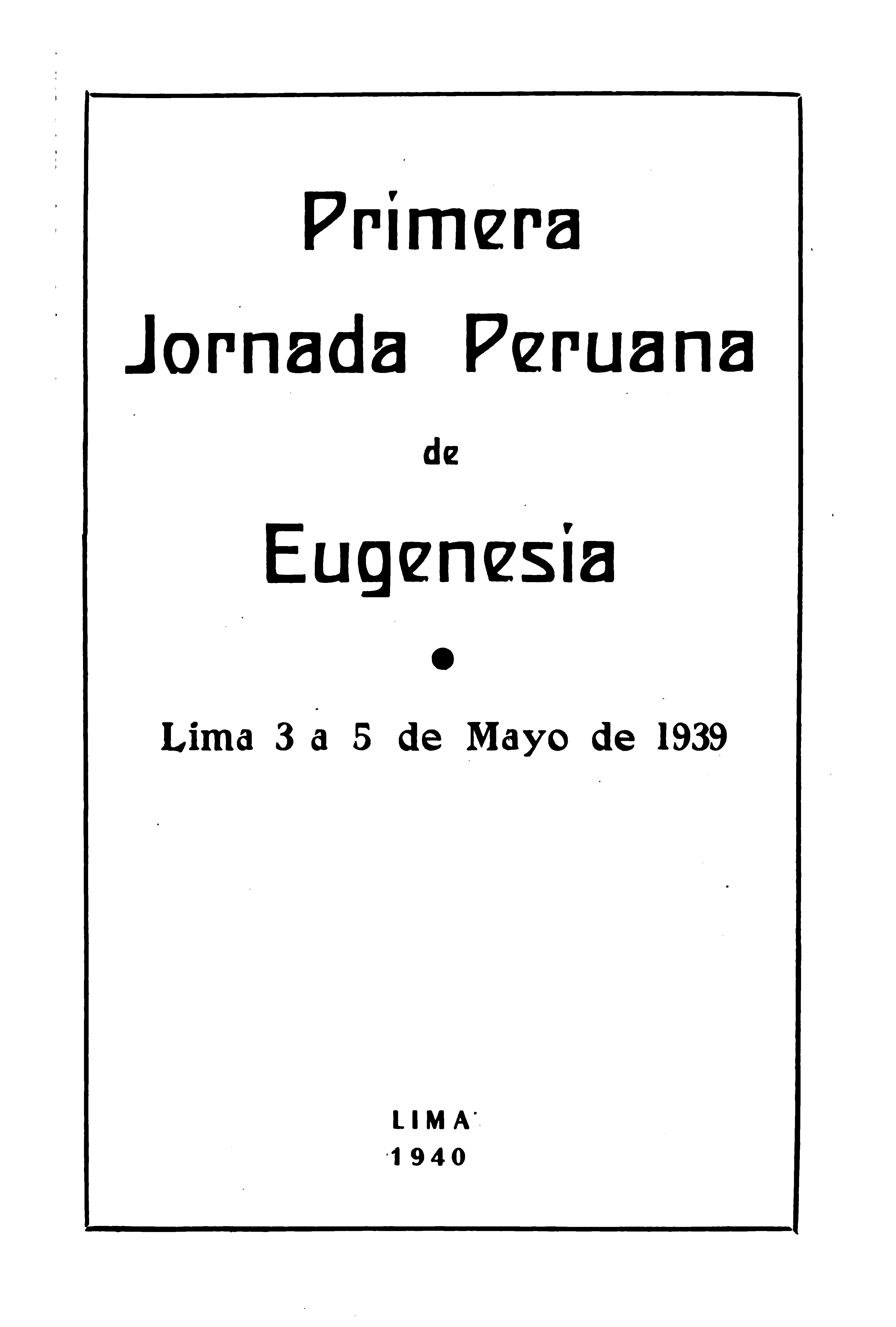 Liga de Higiene y Profilaxia Social (1940). Primera Jornada Eugenésica, Lima, 3 a 5 mayo de 1939. Lima: Imprenta Lux.