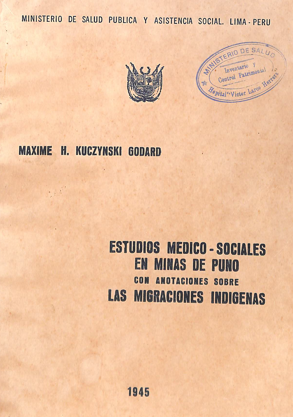 Kuczynski, M. (1913). Estudios Médico-Sociales en Minas de Puno: Con Anotaciones sobre las Migraciones Indígenas. Lima: Empresa Gráfica Scheuch.