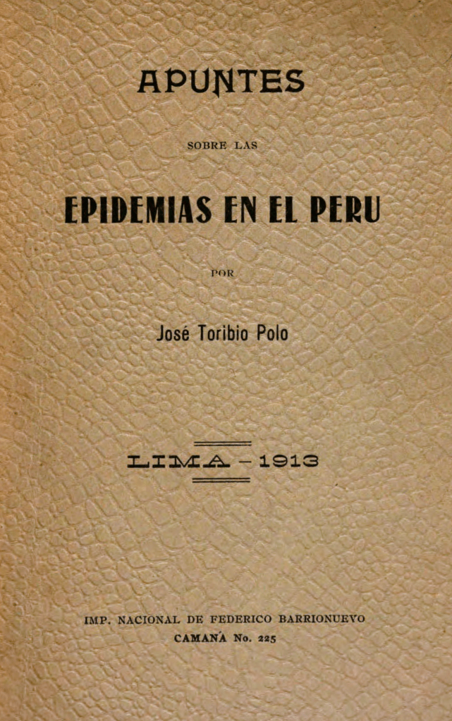 Polo, José Toribio (1913). Apuntes sonbre las epidemiasen el Perú. Lima: Imprenta Nacional.