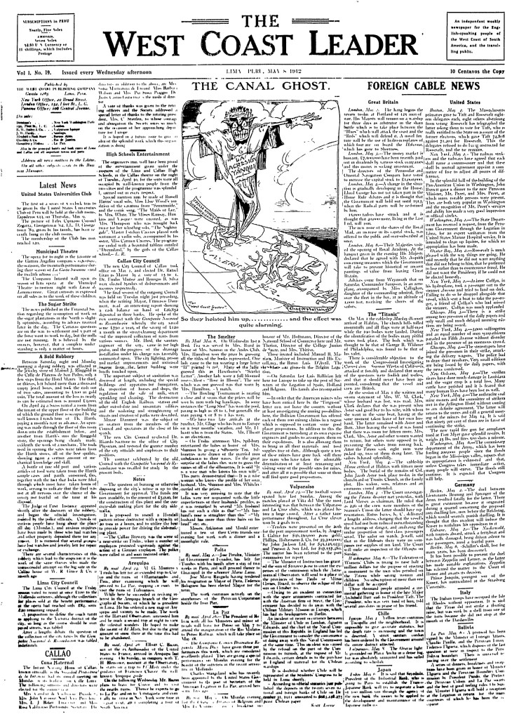 | Notas | Notas del encabezado: “An independent weekly newspaper for the English-speaking people of the West Coast of South America, and the travelling public” [Un semanario independiente para los angloparlantes de la costa oeste de Sudamérica y el público viajero]. Sobre su aparición: Del nro. 1 al 140, de aparición los miércoles en la mañana. Del nro. 141 al 454, de aparición sabatina. Publicación que aparece íntegramente en inglés. Contiene ilustraciones, mapas y fotografías. |