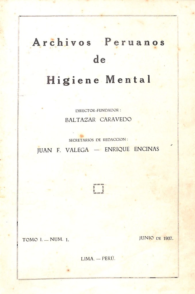 | Reseña | Revista especializada en psiquiatría, neurología y criminología publicada en Lima entre 1937 y 1941. Fue fundada y dirigida por el psiquiatra peruano Baltazar Caravedo Prado, teniendo como secretarios de redacción a Juan Francisco Valega y Enrique Encinas Franco, todos ligados al Hospital Víctor Larco Herrera. Sus páginas sirvieron como órgano de difusión a tres instituciones, principalmente de sus actividades académicas y memorias oficiales. Primero, la Sociedad Peruana de Psiquiatría, fundada en 1923 por los médicos del Asilo Colonia Víctor Larco Herrera y bajo el impulso de Honorio F. Delgado (Revista de Psiquiatría y Disciplinas Conexas, 1924, p. 99). Segundo, el cuerpo médico del Hospital Víctor Larco Herrera, para quienes Archivos sirvió de sucesor a su desaparecido Boletín de Higiene Mental (Lima, 1932-1937). Y tercero, la Liga Peruana de Higiene Mental, instalada en 1933 y vocera del movimiento de higiene mental en el Perú (inspiración para el título de la revista). Este movimiento, cuyo máximo representante fue el estadounidense Clifford Beers en la década de 1910, consideraba que era posible la curación de los trastornos psiquiátricos mediante la profilaxis (labores preventivas) y la educación en materia de salud mental. Su principal exponente en el Perú fue Baltazar Caravedo Prado. Asimismo, se insertaron actas e informaciones de eventos científicos nacionales y extranjeros. Por ejemplo, de la Segunda reunión de las Jornadas Neuro-Psiquiátricas Panamericanas, realizada en Lima en 1939, la cual contribuyó decisivamente a estimular y agrupar a los cultivadores peruanos de las correspondientes disciplinas. Asimismo, de la Primera Jornada Peruana de Eugenesia, también en Lima en 1939, la cual, derivada del darwinismo social, defendió la modificación y mejora de los rasgos hereditarios de la especie humana a través de procedimientos o intervenciones biológicas. Referencias bibliográficas: Revista de Psiquiatría y Disciplinas Conexas (1924). Sociedad Peruana de Psiquiatría. Revista de Psiquiatría y Disciplinas Conexas, 5(1), 99. |