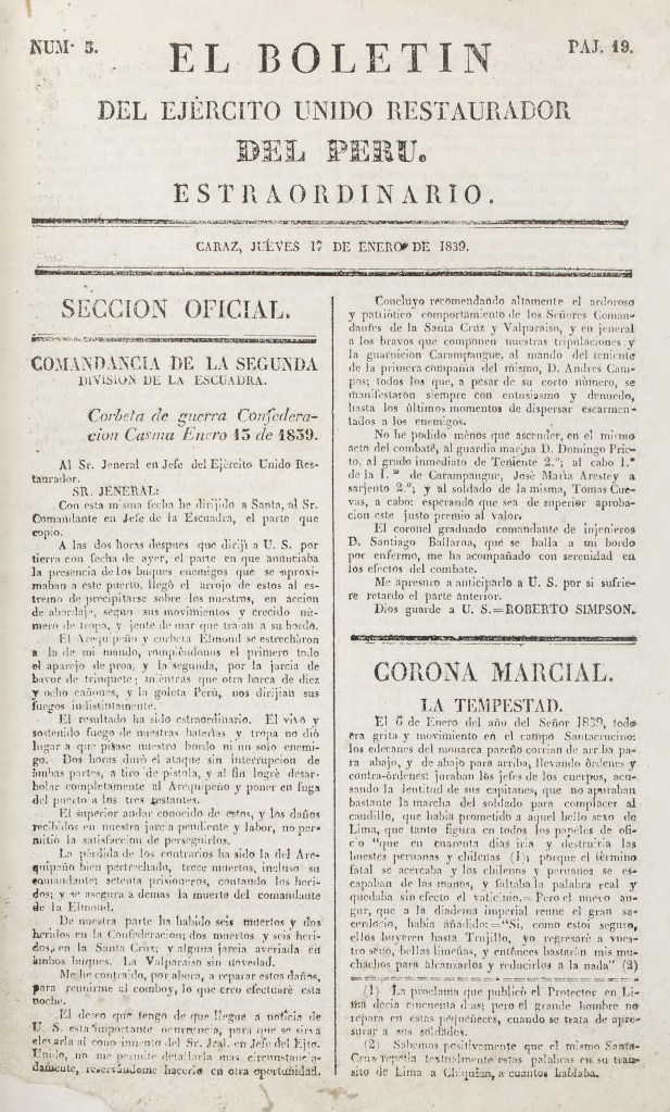 | Título | El Boletín del Ejército Unido Restaurador del Perú |