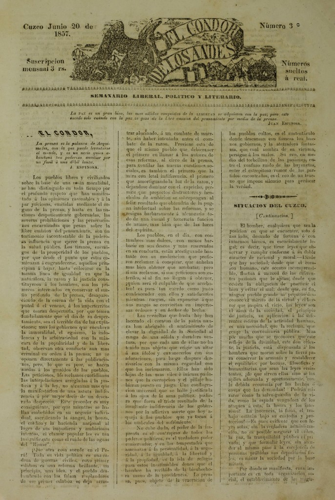 | Título(s) alternativo(s) | El Cóndor de los Andes: Seminario Liberal, Político y Literario |