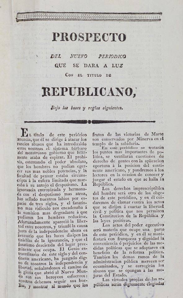 | Notas | En 1975 la Comisión Nacional del Sesquicentenario de las Batallas de Junín y Ayacucho y de la Convocatoria del Congreso Anfictiónico de Panamá del gobierno de Venezuela editó una versión facsimilar de El Republicano, correspondiente a los años 1825 a 1827. |