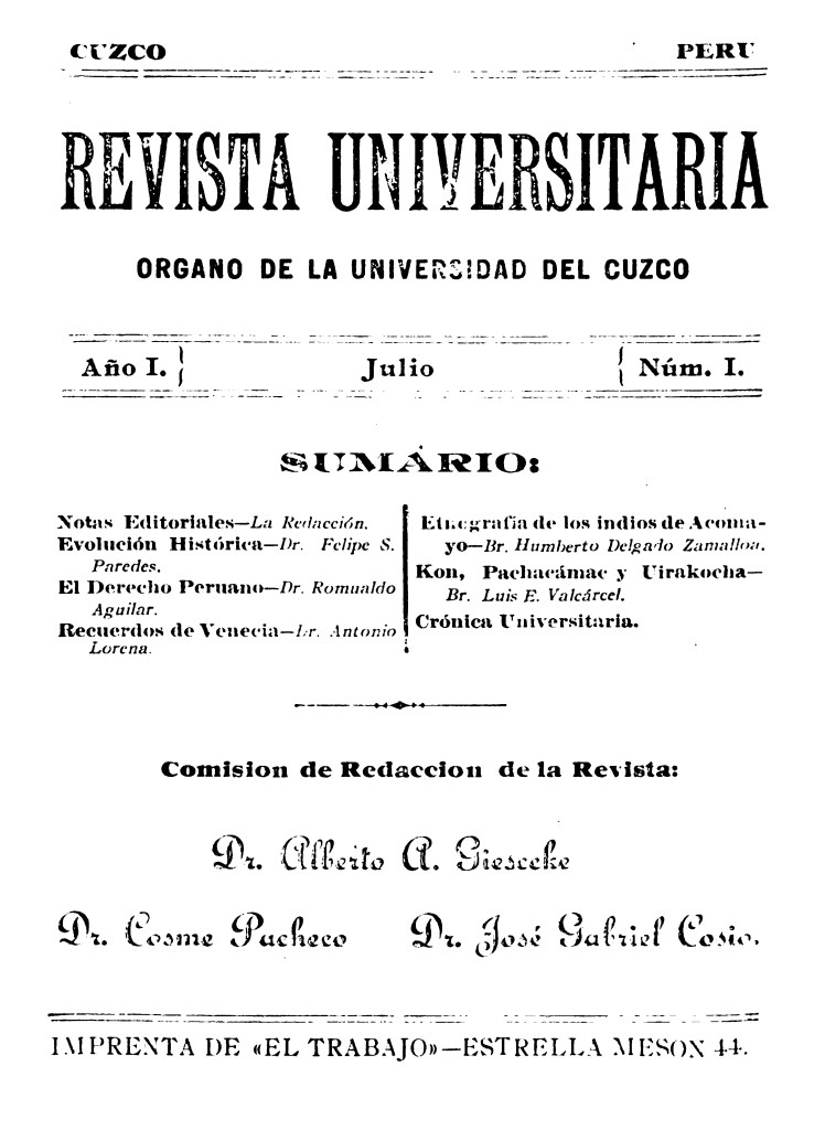 | Título(s) alternativo(s) | Revista Universitaria: Órgano de la Universidad del Cuzco Revista Universitaria: Órgano de la Universidad Nacional San Antonio de Abad de Cuzco |