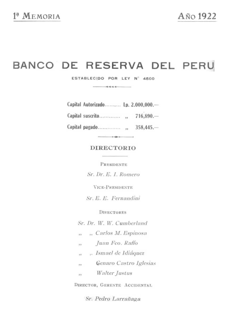 - Las memorias de 1922-2023 pueden ser consultada en Banco Central de Reserva del Perú.