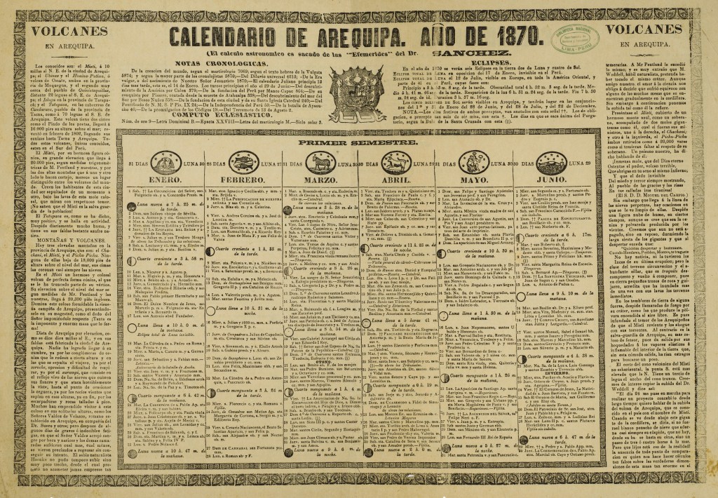 Entre al menos 1848 hasta 1857, año de su fallecimiento, los cálculos astronómicos y climáticos estuvieron a cargo de Mateo Paz Soldán, destacado matemático, astrónomo y geógrafo arequipeño (Consejo Provincial de Arequipa, 1909, p. 53). En años posteriores, dichos cálculos aparecen firmados por el «Dr. Sánchez».