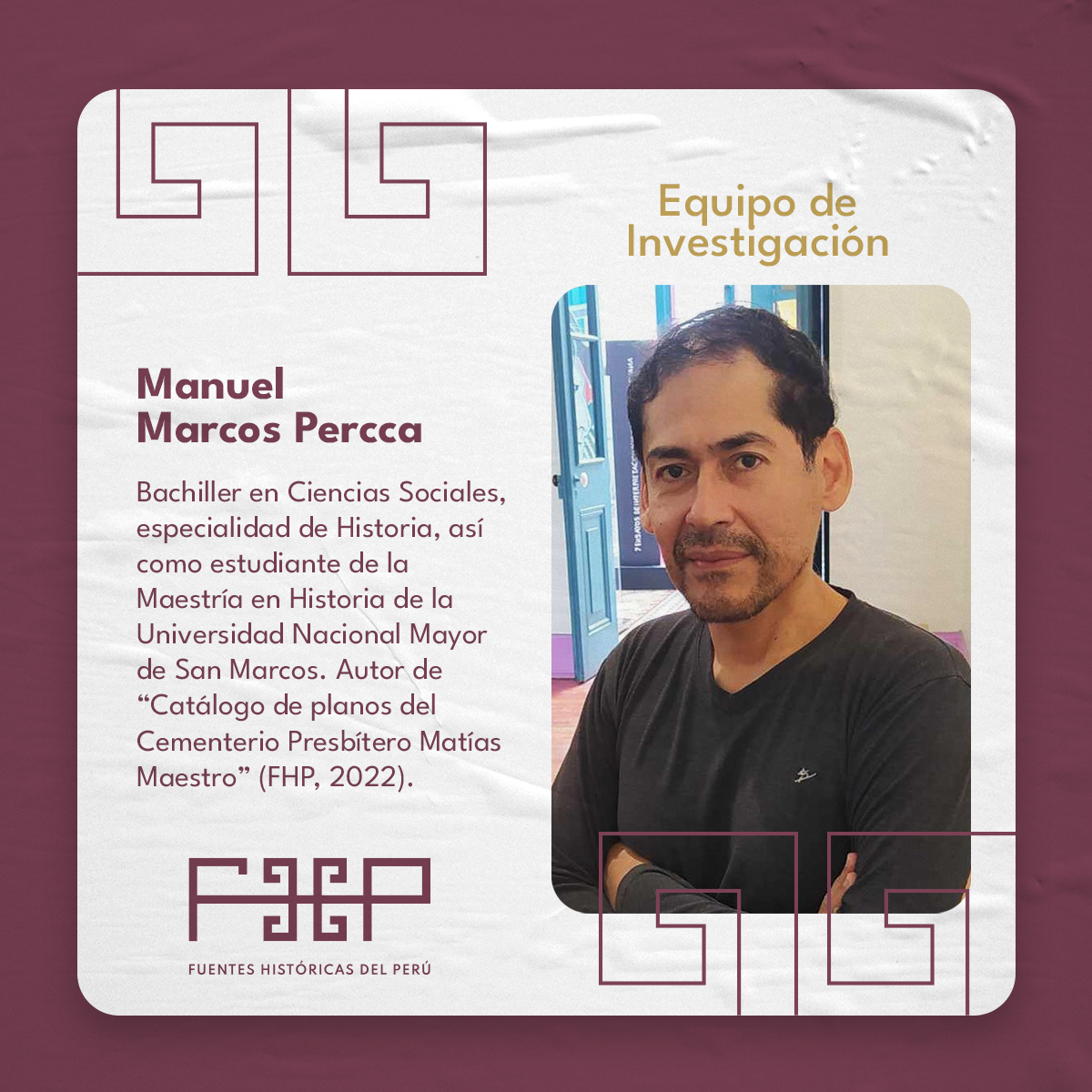 ¿Quiénes hacen posible que Fuentes Históricas del Perú exista? Somos un equipo cohesionado de académicos provenientes de diversas universidades peruanas. Nuestra misión es brindar un acceso enriquecedor al pasado a través de los recursos digitales en Open Access. Te invitamos a conocer un poco más a nuestros integrantes.