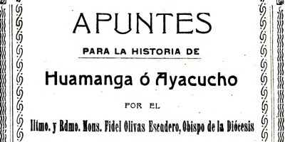 «Apuntes para la historia de Huamanga o Ayacucho […] con motivo del Primer Centenario de la Batalla, 1824-1924» por Fidel Olivas Escudero (Ayacucho, 1924)